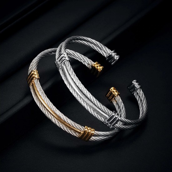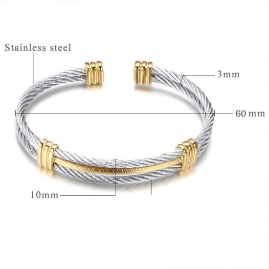 Bratara fixa, din otel inoxidabil placat cu aur, reglabila, flexibila.