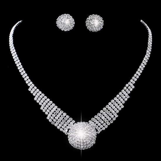 Set Colier si Cercei Diamond SplendorSet placat cu aur, decorat cu cristale Simulated Diamonds. Este insotit de CERTIFICAT DE GARANTIE. Dimensiune lant: 40 cm + 5 cm Dimensiune cercei: 1.3 cm Setul se livreaza in cutie pentru bijuterii.