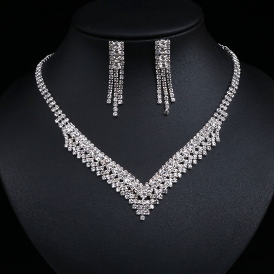 Set bijuterii GorgeousSet placat cu aur, decorat cu cristale zirconia. Este insotit de CERTIFICAT DE GARANTIE. Dimensiune lant: 30 cm(+ 17 cm ajustare) Dimensiuni cercei: 4.5 cm x 1 cm Ambalare cadou gratuita cutie bijuterii.