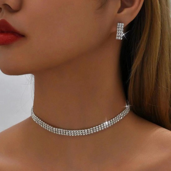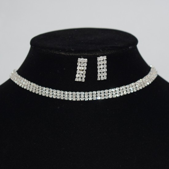 Set bijuterii colier si cercei Diamond LookSet bijuterii decorat cu Zirconia Simulated Diamonds. Dimensiune lant: 30 cm(+ 7 cm ajustare) Dimensiuni cercei: 2 cm x 0.7cm Este insotit de Certificat de Garantie. Setul se livreaza in cutie pentru bijuterii.
