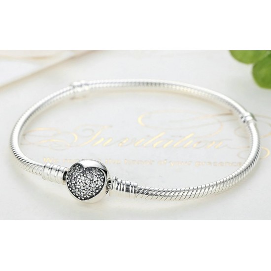 Bratara din argint 925, marcata s925, placata cu rhodiu, cu inchizatoare charm incrustat cu cristale zirconia in forma de inima.