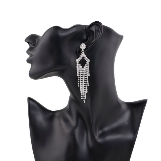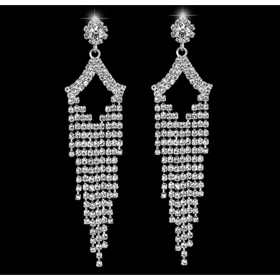 Cercei placati cu aur alb, incrustati cu cristale Simulated Diamond.