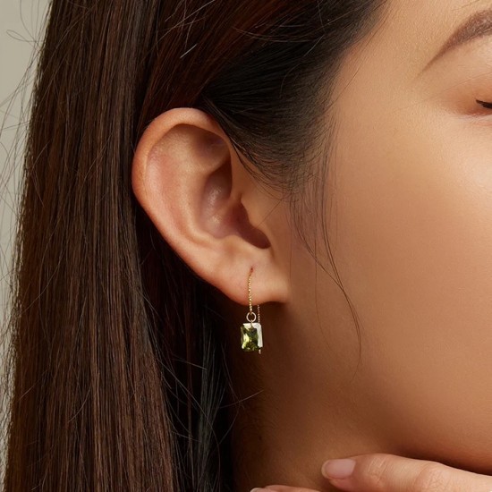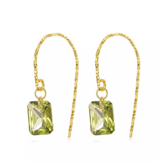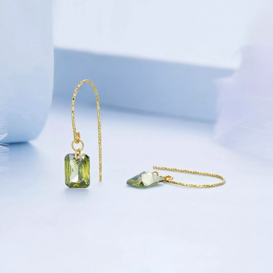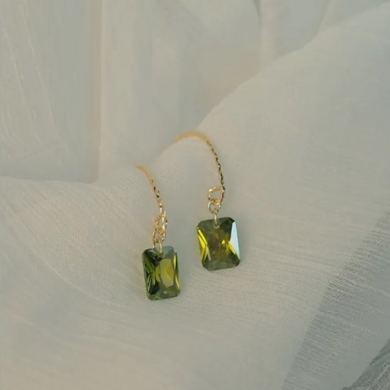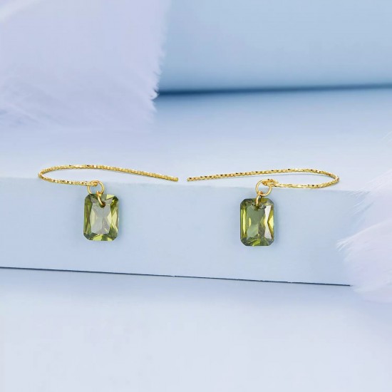 Cercei din argint 925, placati cu aur galben, cu zirconiu verde.