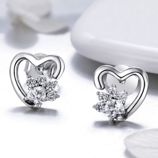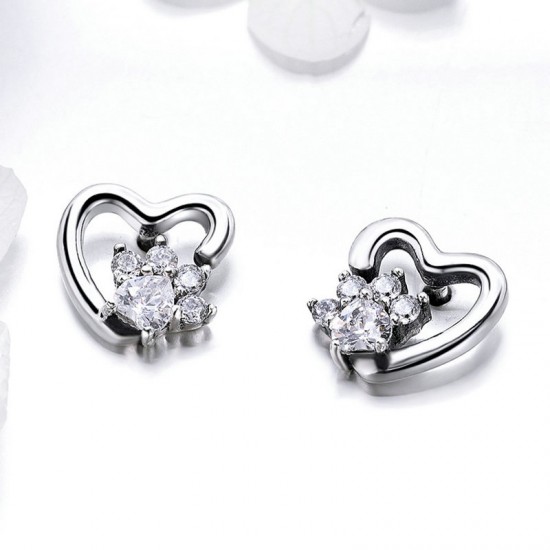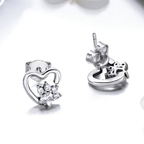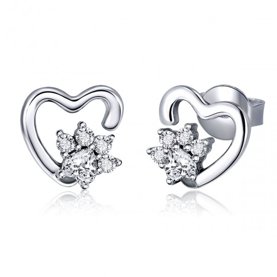 Cercei argint Heart Crystal Paws