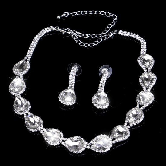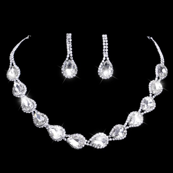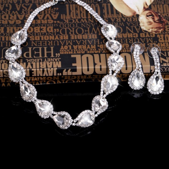 Set bijuterii placat cu aur, decorat cu diamante de zirconiu cubic si cristale Swarovski.