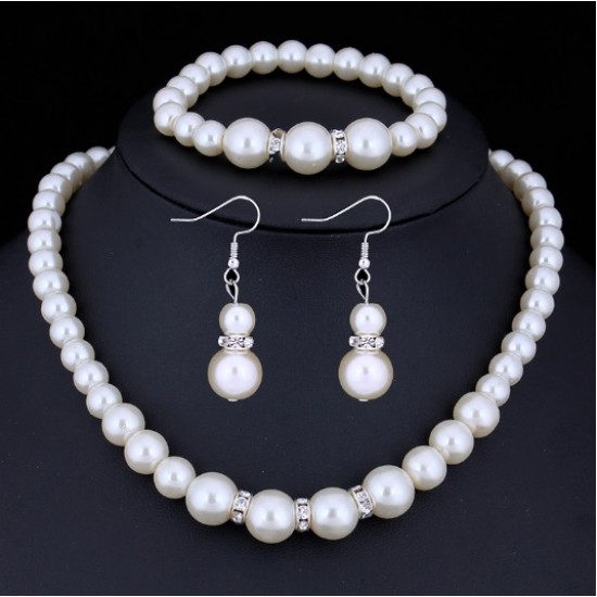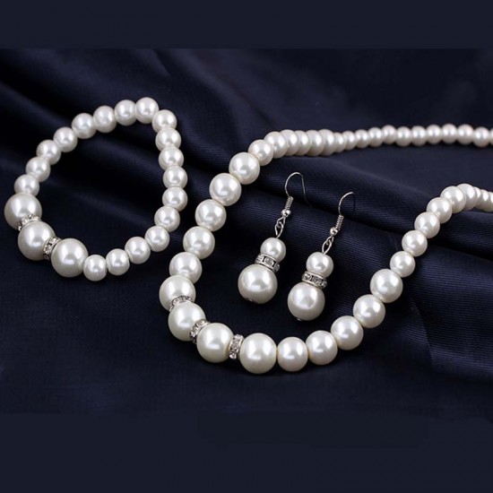 Set Bijuterii cu perle placat cu aur alb de 18k.