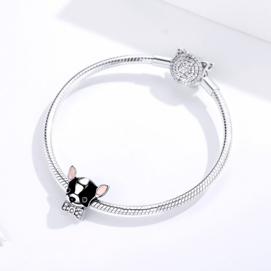 Talisman argint ChihuahuaTalisman din argint 925, placat cu rodiu, decorat cu cristale. Dimensiuni talisman: 1.3 x 1.4 cm Greutate: 1.9 g Este insotit de certificat de garantie. Ambalare cadou gratuita.