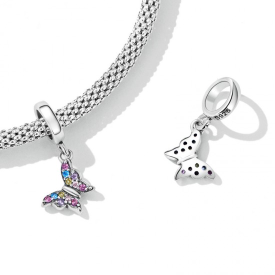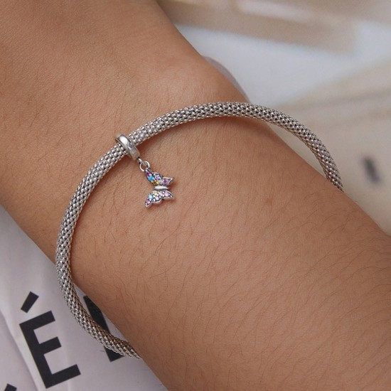 Talisman din argint 925 in forma de fluture incrustat cu cristale multicolore.
