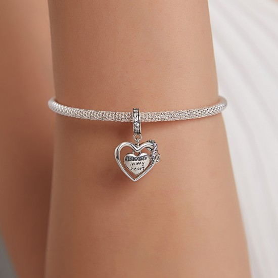 Talisman din argint 925, placat cu rodiu, in forma de inima, decorat cu cristale.