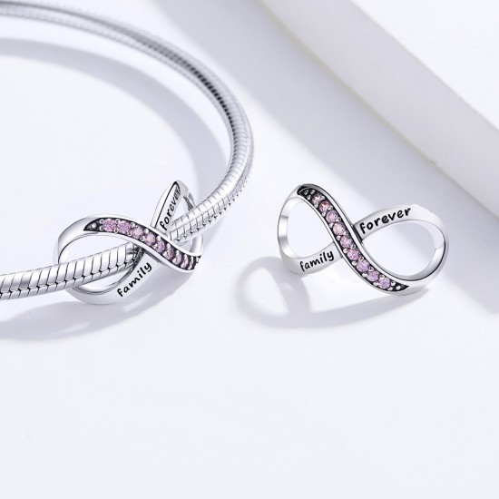 Talisman argint Infinite Pink Family ForeverTalisman din argint 925, placat cu rodiu, decorat cu cristale roz. Greutate: 1.4 g Dimensiuni talisman: 2 x 1 cm Este insotit de certificat de garantie. Ambalare cutiuta cadou gratuita.