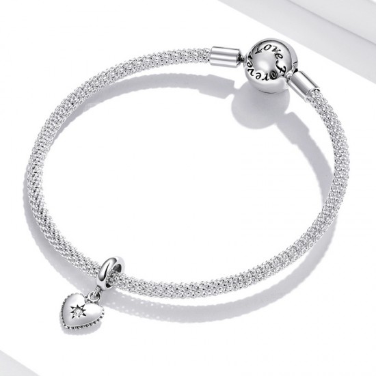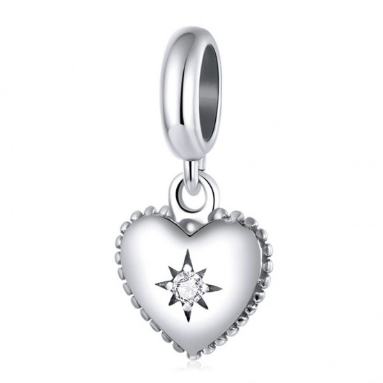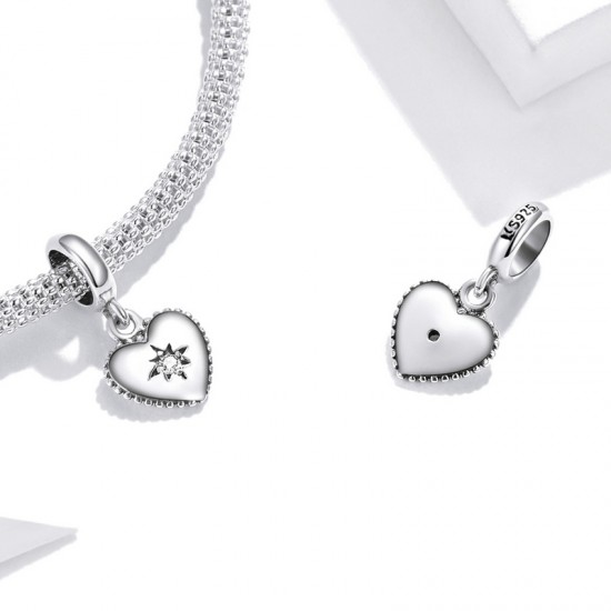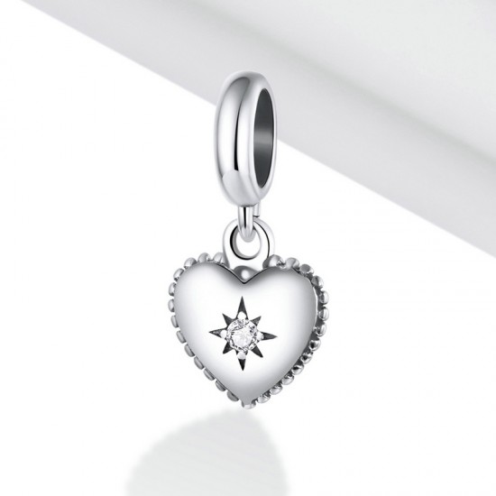 Talisman din argint 925, placat cu rhodiu, in forma de inima cu izbucnire de stele.