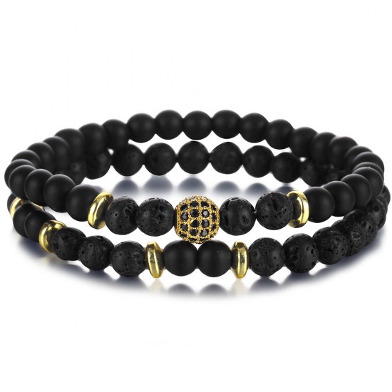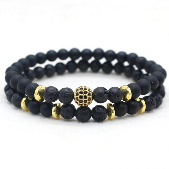 Set 2 bratari, din pietre naturale negre Onix mate si roca vulcanica de 6 mm care se fac remarcate prin elementul central, un charm incrustat cu diamante CZ.