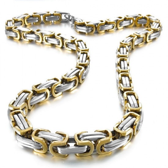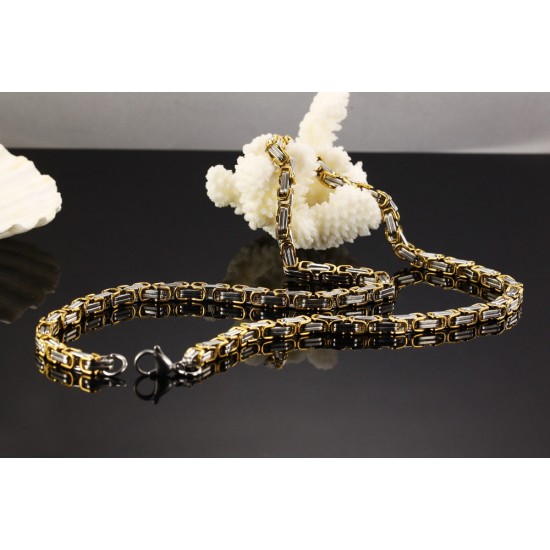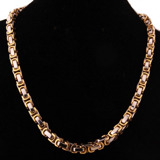 Lant Freedom Gold Silver otel inoxidabilLant masiv barbati din otel inoxidabil placat cu aur de 18k. Lungime lant: 60 cm Grosime: 0.5 cm Greutate: 46 g Este insotit de CERTIFICAT DE GARANTIE. Lantul se livreaza in cutiuta cadou.