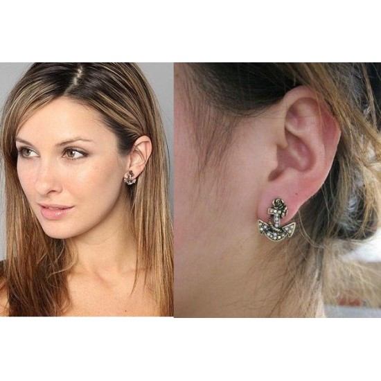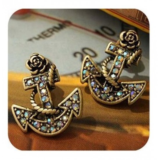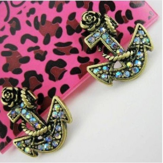 Cercei AncoraCercei fashion cu cristale in forma de ancora. Dimensiuni: 1.8x1.8cm Cerceii se livreaza in saculet de bijuterii.