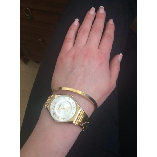 Bratara eleganta din otel inoxidabil placata cu aur, model tennis.
