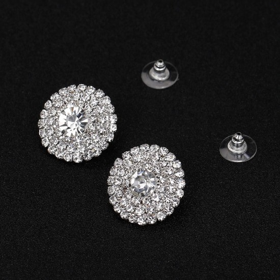Cercei placati cu aur alb, incrustati cu cristale Swarovski.