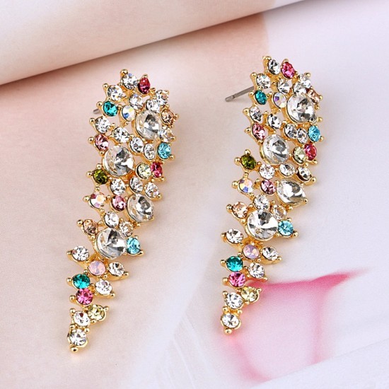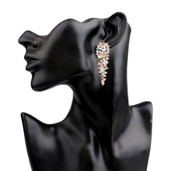 Cercei Multicolours Chandelier LuxuryCercei placati cu aur alb, decorati cu cristale Swarovski. Sunt insotiti de CERTIFICAT DE GARANTIE. Dimensiuni cercei: 1.6 cm x 5 cm Se livreaza in cutie de bijuterii.