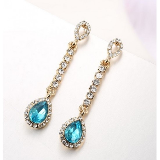 Cercei Sophie BlueCercei placati cu aur. Lungime: 5 cm Sunt insotiti de CERTIFICAT DE GARANTIE. Se livreaza in cutie de bijuterii.