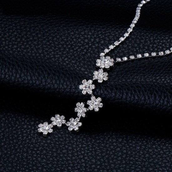 Set placat cu aur alb, decorat cu cristale zirconia.