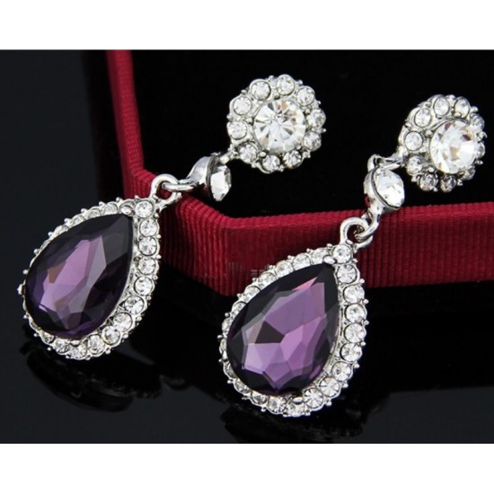 Cercei Ametist placati cu aur alb, cu un design elegant si feminin.