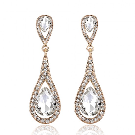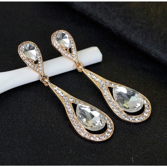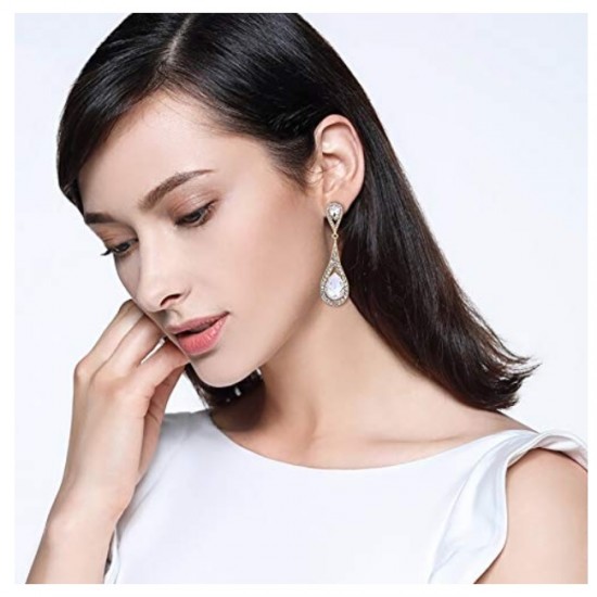 Cercei placati cu aur, cu un design elegant si feminin, incrustati cu cristale Swarovski.