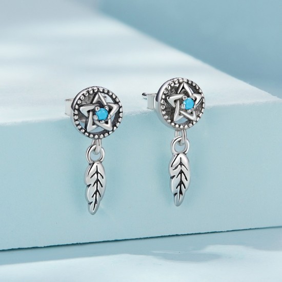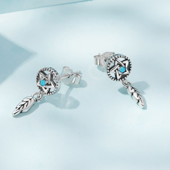 Cercei argint Dream CatcherCercei din argint 925, incrustati cu cristale turcoaz. Dimensiuni: 1.6 cm x 0.7 cm Greutate: 1.4 g Sunt insotiti de certificat de garantie. Ambalare cutiuta cadou gratuita.