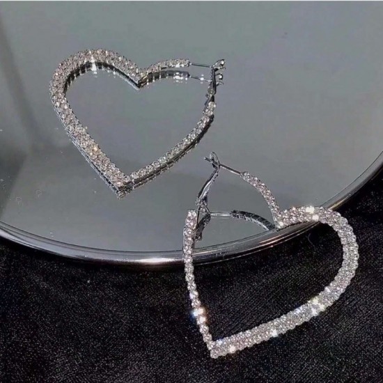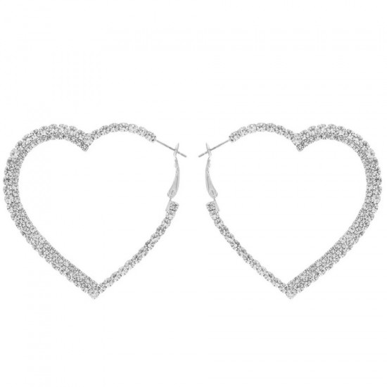 Cercei Stralucitori Creole InimaCercei placati cu aur alb, in forma de inima, incrustati cu cristale. Dimensiuni cercei: 5 cm diamentrul. Sunt insotiti de certificat de garantie. Se livreaza in saculet de bijuterii.