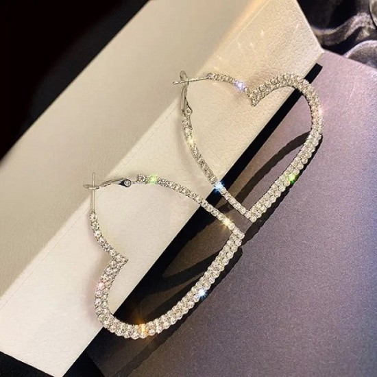 Cercei placati cu aur alb, in forma de inima, incrustati cu cristale.