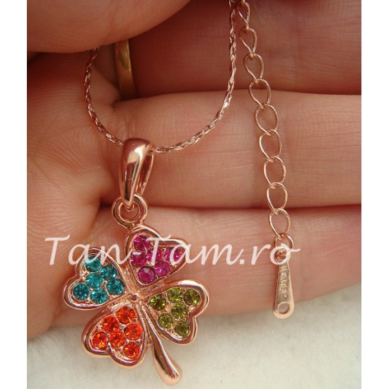 Colier cu pandantiv in forma de trifoi placat cu aur, marcat, decorat cu cristale cubic zirconia.